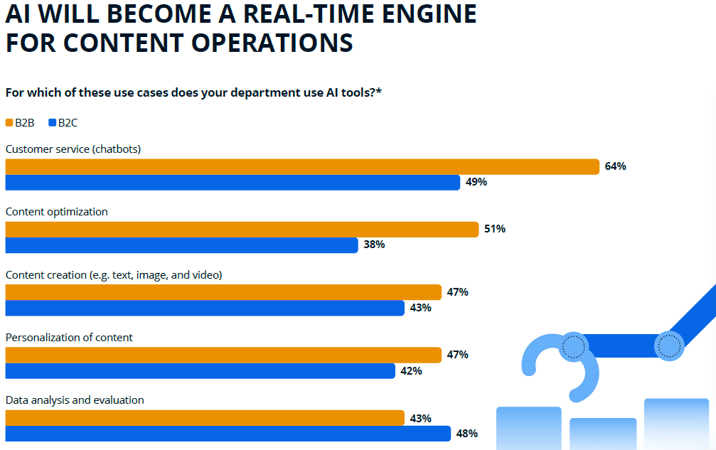 L’IA est déjà une réalité quotidienne pour la grande majorité des professionnels. En effet, 92% des marketeurs de contenu B2B l’ont intégrée comme une partie régulière de leurs processus. Et cette dynamique va se poursuivre, puisque 68% d’entre eux prévoient d’étendre leurs applications de l’IA en 2025.